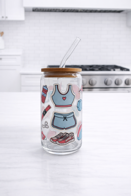 Meet your everyday motivation in a cup. Our 16oz Hydrababe Glass Can is designed for the girl who lifts heavy, drinks her water, and looks cute doing it. Featuring our signature feminine fitness aestethetic, this glass can is perfect for iced coffee, protein shakes, matcha, or daily hydration.