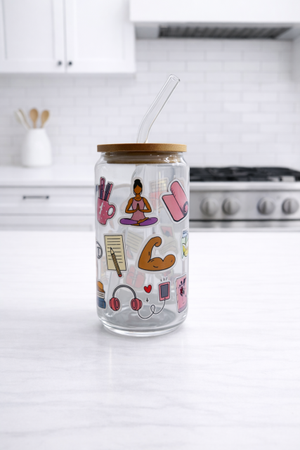 Meet your everyday motivation in a cup. Our 16oz Hydrababe Glass Can is designed for the girl who lifts heavy, drinks her water, and looks cute doing it. Featuring our signature feminine fitness aestethetic, this glass can is perfect for iced coffee, protein shakes, matcha, or daily hydration.